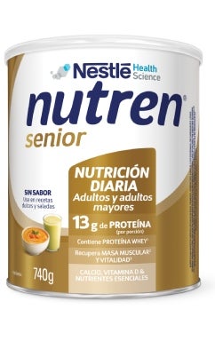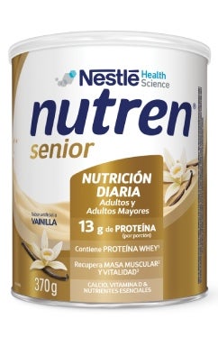 NUTREN® Senior Vainilla es un complemento alimenticio que te brinda 13 g de proteína por porción. Tiene hierro, zinc, calcio y 12 vitaminas (B1, B2, B12, entre otras) para disfrutar de la mejor etapa de la vida: el ahora.